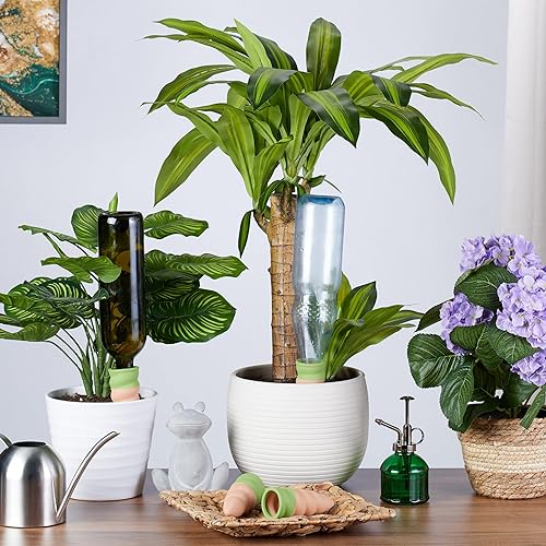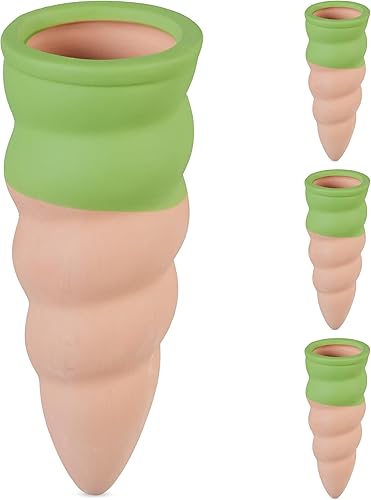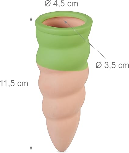 Relaxdays Arrosage en Terre Cuite, Lot de 4, pour Bouteilles 1,5 l, pour Plantes d’intérieur, Marron et Vert