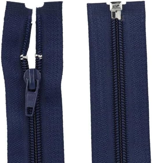 Fermeture Eclair Bleu Marine Séparable 60 CM, ouvrante en Nylon et Plastique, Maille 5 MM Curseur Métal pour blouson, veste, manteau.