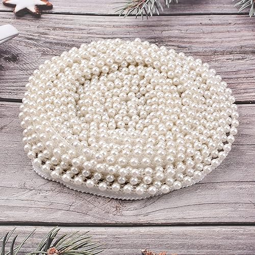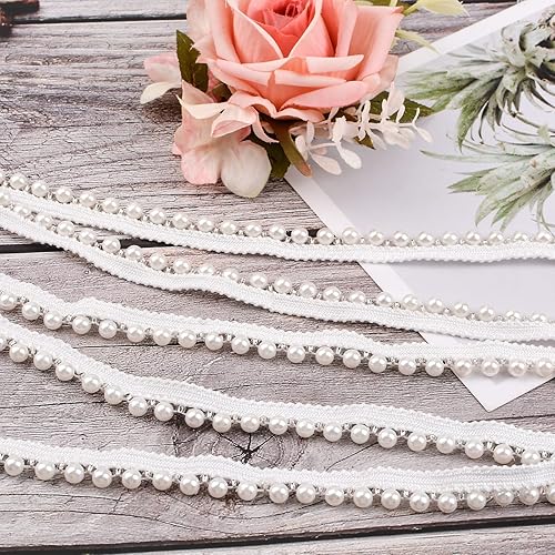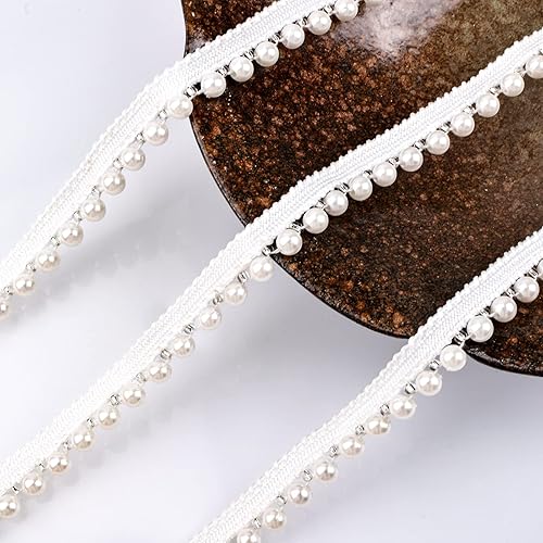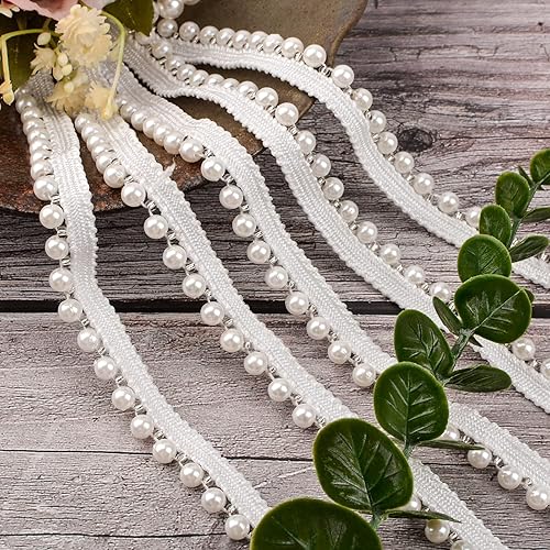 URROMA Ruban en dentelle à franges avec perles de 6 mm, 9,1 m de long de style vintage blanc bordures, tissu brodé, applique à coudre