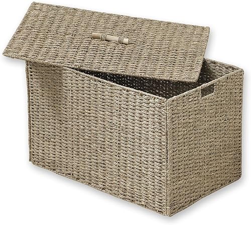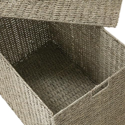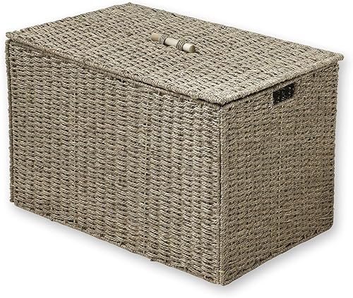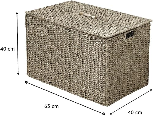 Casâme Coffre Pliable - avec Couvercle et Poignée - en Jonc de Mer - Fibres Naturelles - Malle - Coffre de Rangement - Style Nature - Beige - L65 x P40 x H40 cm