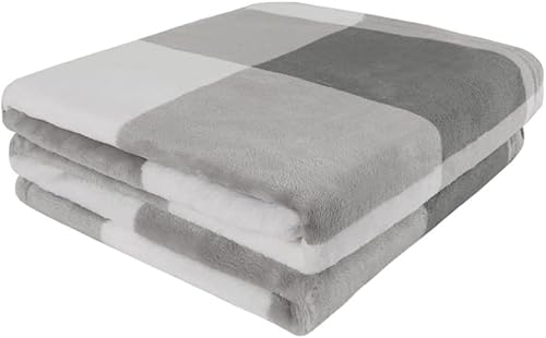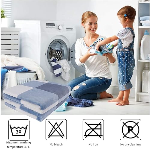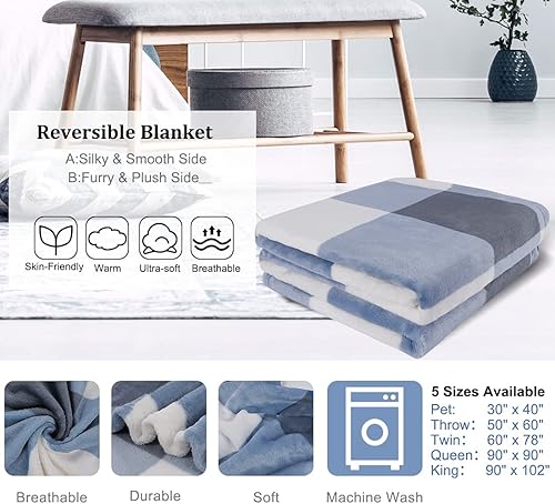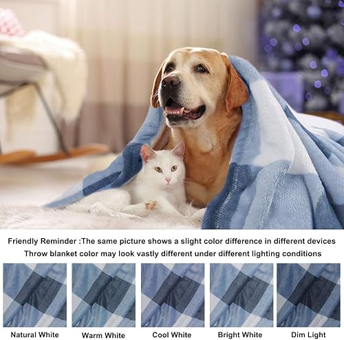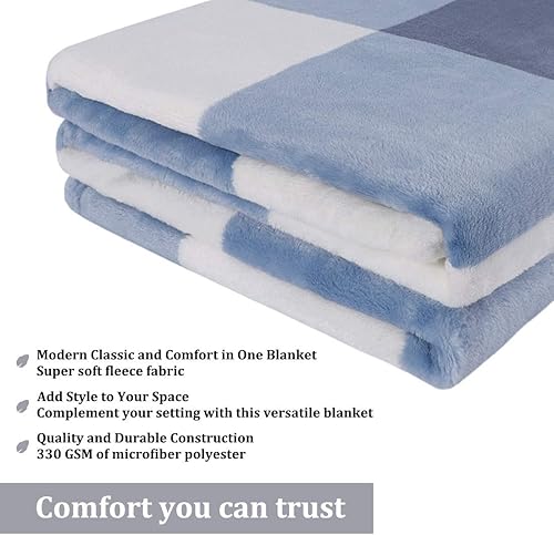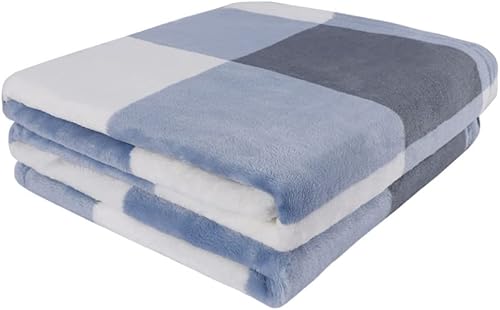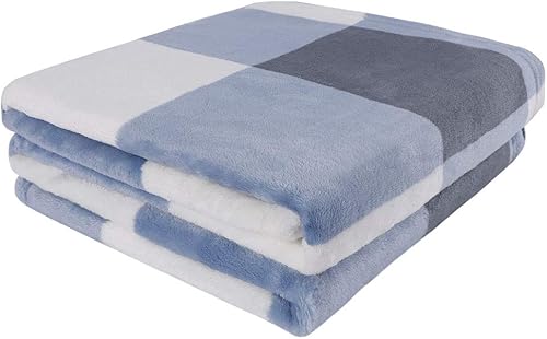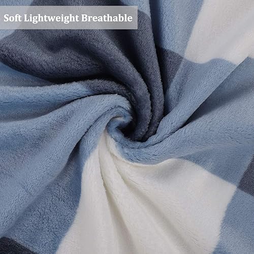 PICCOCASA Couverture Plaid Lit pour Canapé en Molleton Flanelle Carreaux Buffalo Bleu et Blanc 75 x 100 cm