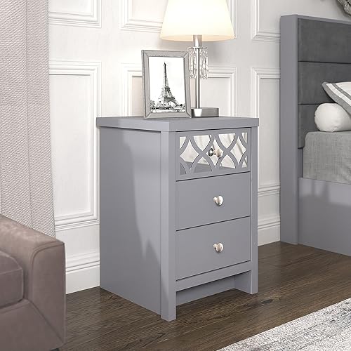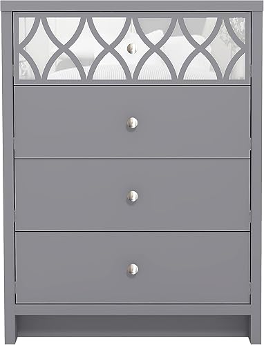 Galano Iris Table de chevet à 3 tiroirs - Armoire moderne avec 1 tiroir miroir - Organisateurs et rangement pour chambre à coucher - Console pour entrée - couloir ou salon - Blanc