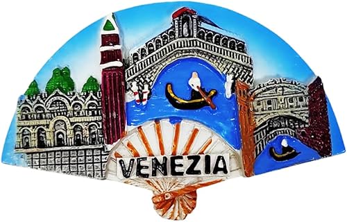Aimant en résine de réfrigérateur Venise Pont du Rialto 3D en forme d'éventail souvenir de collection maison cuisine 7 x 7 cm V-112