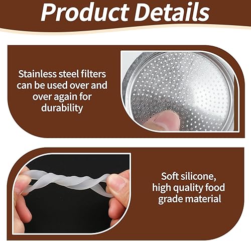 Joint en caoutchouc de rechange pour machine à expresso 6 tasses avec 4 joints en silicone et 2 filtres, anneau en caoutchouc de qualité alimentaire