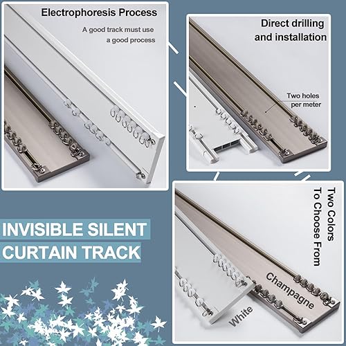 Rail De Rideau Robuste Montage Au Plafond Double Tringle À Rideaux Longueur 1-6m Rail Rideaux Plafond Aluminium Pour Séparateur De Pièce, Intimité(White,3.0m(2 * 1.5m))