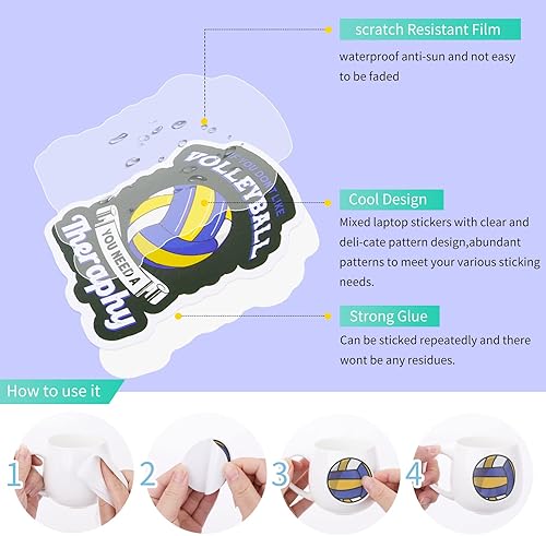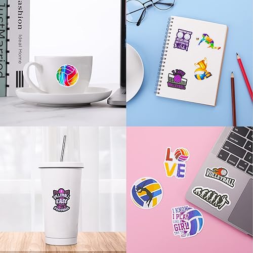 cobee Autocollants de Volley Ball Mignons, 50 Pièces Autocollants de Sport Autocollants Imperméables Cadeaux de Volley Ball pour Adolescents Filles Adultes
