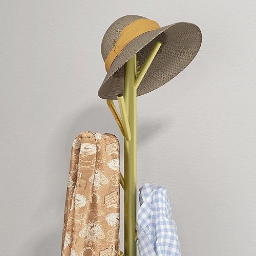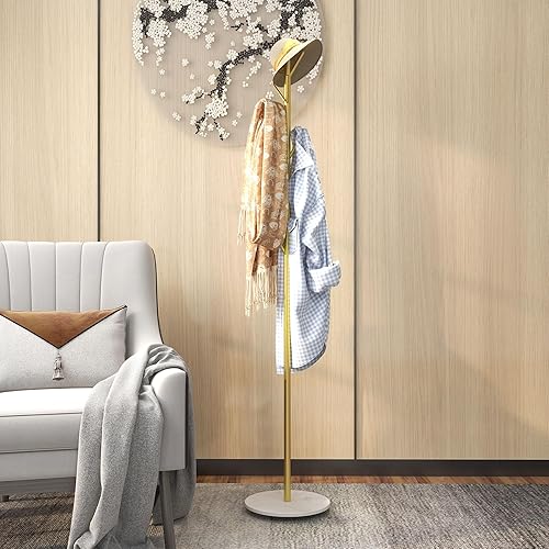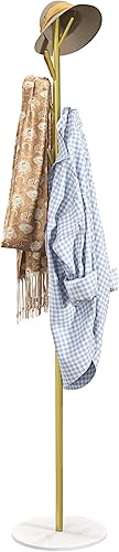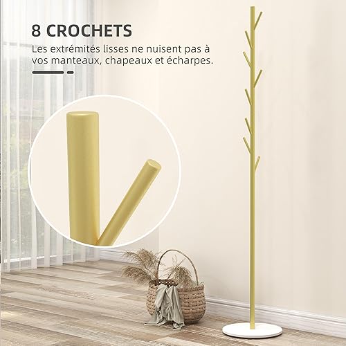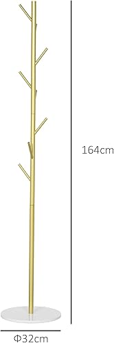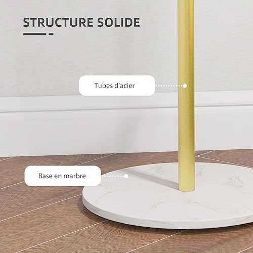 HOMCOM Portemanteau portant à vêtements, 8 patères, base ronde en marbre, Ø 32 x 164H cm, meuble d'entrée pour vêtements, chapeaux, doré