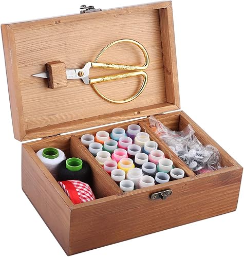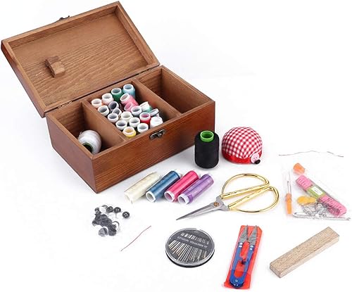 HERCHR Panier à Coudre en Bois, boîte à Couture avec Accessoires pour kit de Couture pour Adultes, Enfants