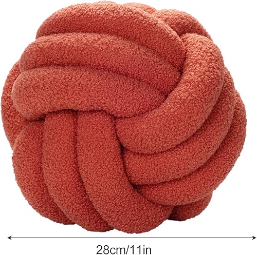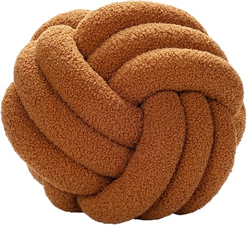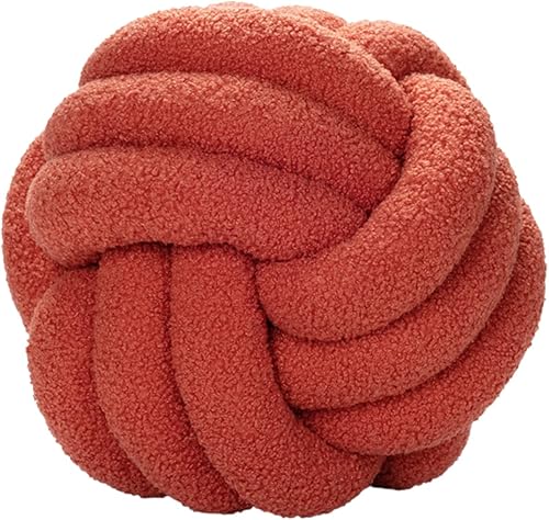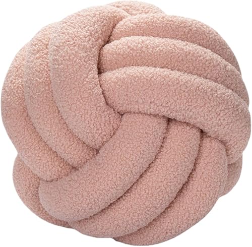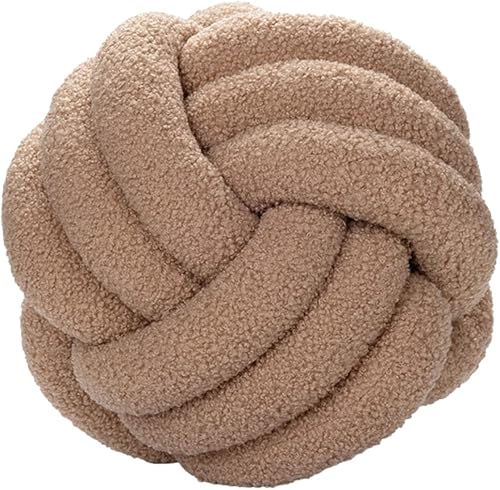 Julyue Coussin nœud - Rond en laine d'agneau - 28 cm - Décoration d'intérieur - Fait à la main - Pour canapé, lit, voiture, bureau - Blanc cassé