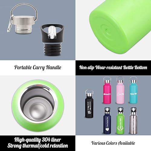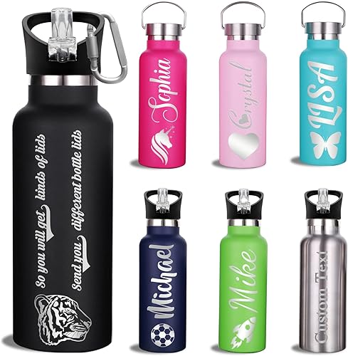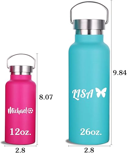 Gourde Isotherme Personnalisable avec Prenom Gravée Thermos Personnalisé Bouteille Personnalisee Cadeau pour Enfant, Fille, Garcon, Adulte, Maternelle (Inox, 750 ml / 350 ml, 7 Couleurs)