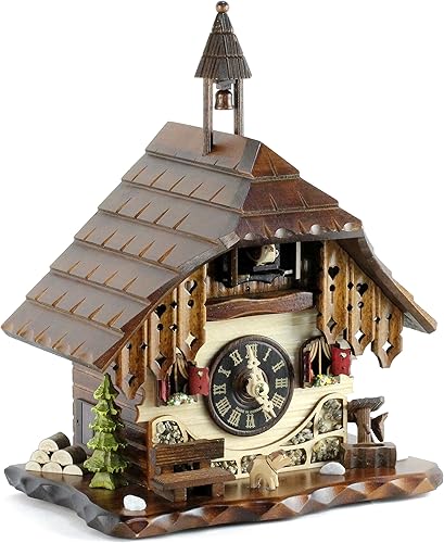 Eble 22307 Horloge à coucou en bois véritable à piles avec mouvement à quartz Motif maison de la Forêt Noire 28 cm