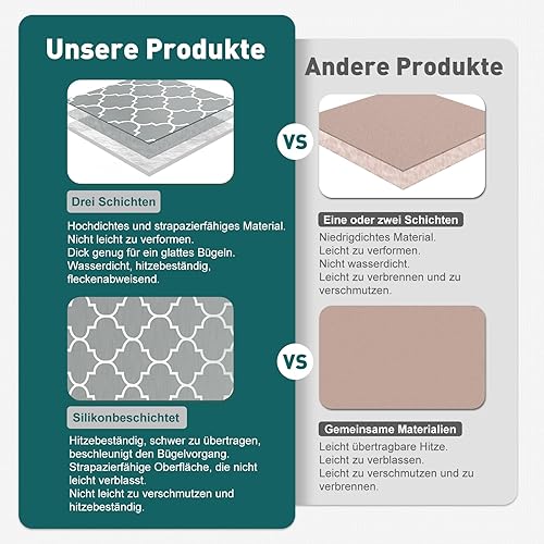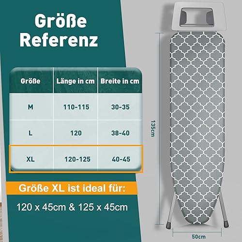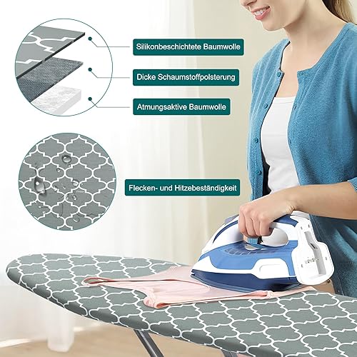 125 x 45 - Housse de table à repasser - Rembourrage en silicone extra épais avec protection contre le feu et les taches - 3 tailles - Housse de table à repasser pour centrale vapeur et fer à repasser