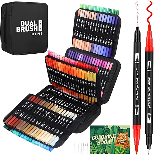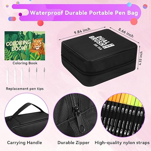 TrendGate Feutres Coloriage Adulte, 180 Couleurs Aquamarker Feutre Stylos Double Pointe Fine et Pinceau pour Enfants, Feutre Aquarelle avec Livre de Coloriage pour Dessin, Mandalas, Calligraphie