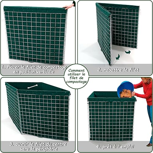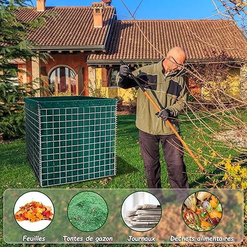 Lechin 1000 L Composteur de Jardin, 100x100x100cm Bacs à Compost de Jardin, Qualité Supérieure Composteur Grille Métallique pour Fruits Perdre des Feuilles de Compostage