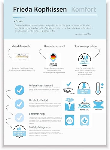 ETÉREA® Kopfkissen 70x90cm [ÖKOTEX Zertifiziert] - Frieda Kissen 70x90 mit Reißverschluss - Weicher gesteppter Mikrofaserbezug - Pillow 70x90 - Komfort Schlafkissen - Kopfkissen Allergiker - Weiß