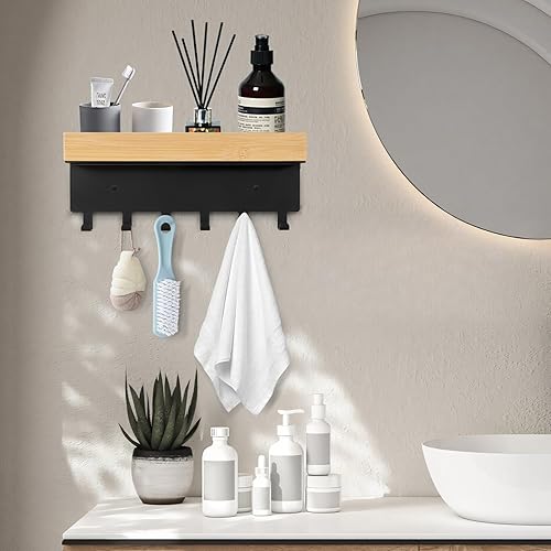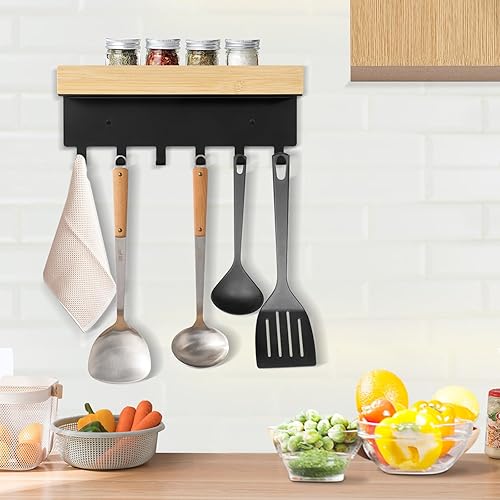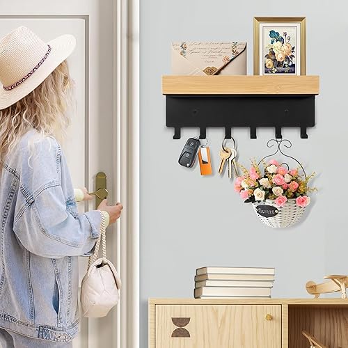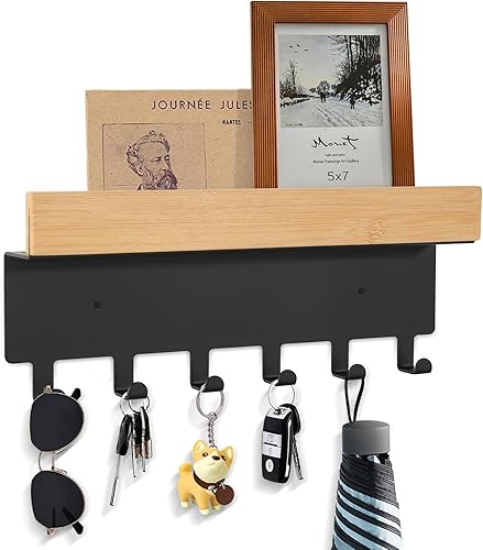 TINIFO Porte Clé Mural, Accroche Clef Mural en Bois en Acier avec 6 Crochets, Rangement Clef Mural Adapté à L'entrée, à la Cuisine, au Bureau et au Salon (6 Haken)