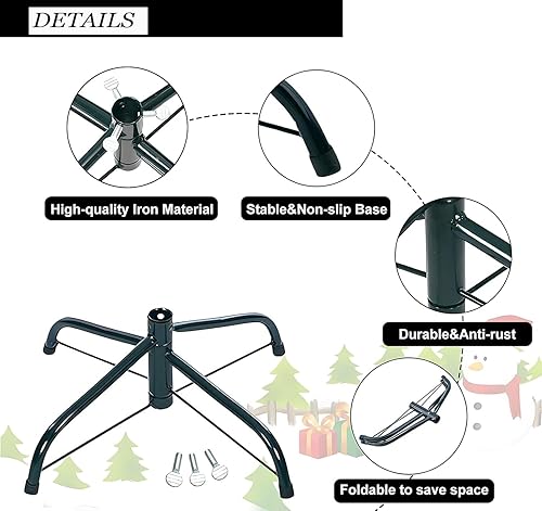 JUXINE Support d'arbre De Noël Support en métal avec Pieds en Caoutchouc et vis Support de Sapin de Noël Pliable de 35 cm Base De Trépied en Fer pour Arbre De Noël 4 Pi, 5 Pi, 6 Pi
