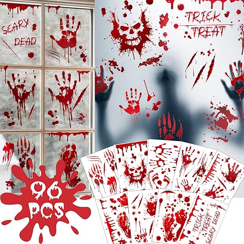 Kiiwah 96 PCS Halloween Autocollant de Fenetre Stickers Halloween Fenetre de Spooky Reutilisable pour Décorations de Fête d'halloween (9 Feuilles)