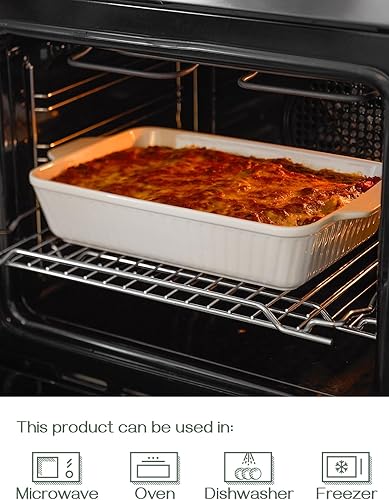 DOWAN Casserole, 9x13 plat de cuisson en céramique, grand plat à lasagne profond pour le four, 4.2 quarts plat de cuisson avec poignées, résistant au four et durable pour lasagne, cadeau de mariage