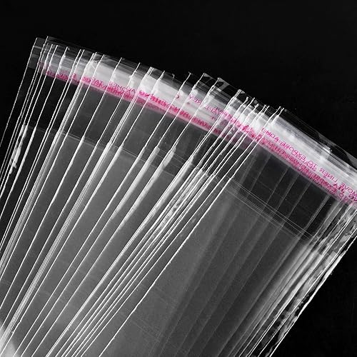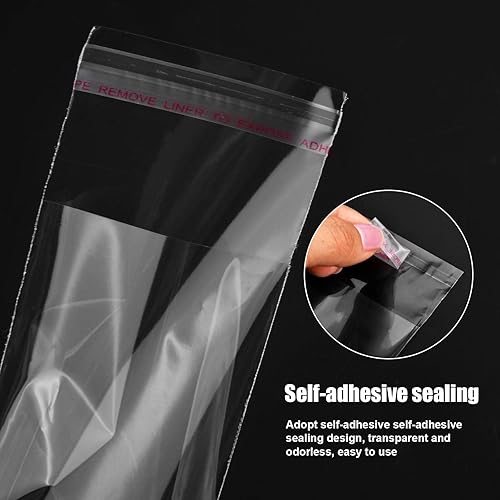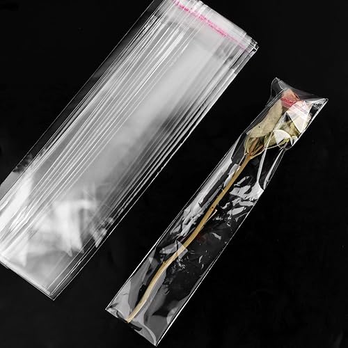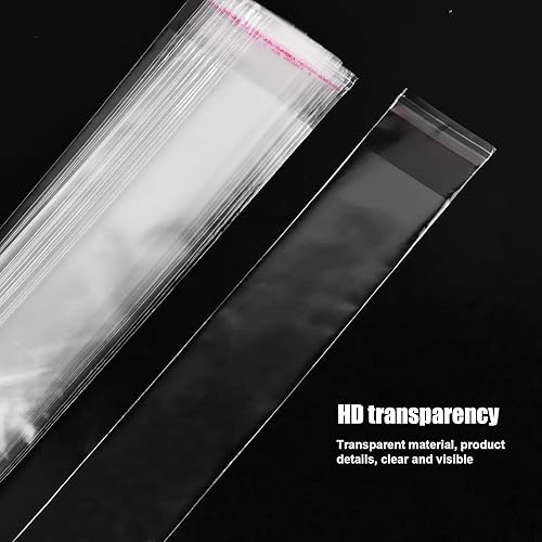 Lot de 300 Sachets Plastiques Transparents, Sacs Cellophane Autocollants Longs pour Bonbons Bijoux Bougies Biscuits Glace sur Bâtonnet (9.4in x 1.9in) (S)