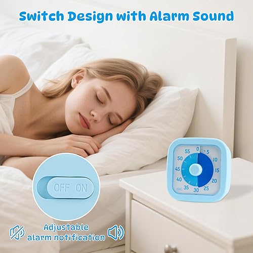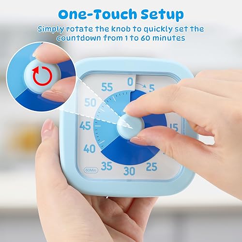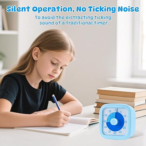 Euqvunn Minuteur Visuel Enfant, 60 Minutes Visual Timer pour Enfants et Adultes, Minuteur Visuel Timer Enfant avec Fonction Silencieuse pour Cuisine École Bureau, Bleu