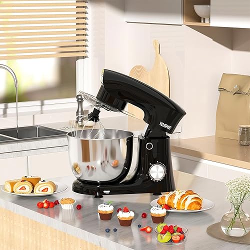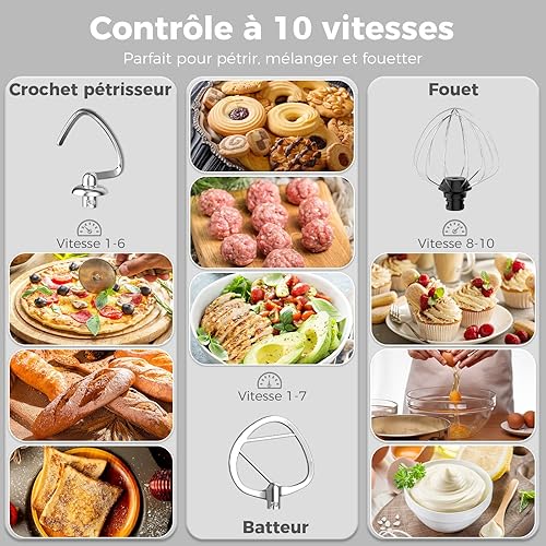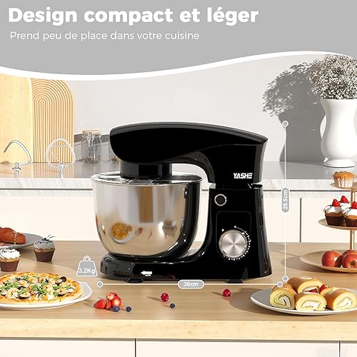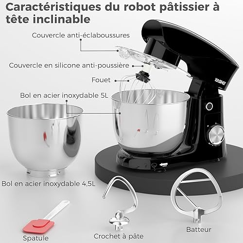 YASHE Robot Pâtissier 1500W, 4,5L + 5,5L Deux Bols en Acier Inoxydable, 10+P Vitesses, Tête Inclinable, Crochet à Pâte, Batteur & Fouet, Robot Pétrin Professionnel