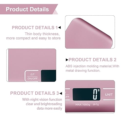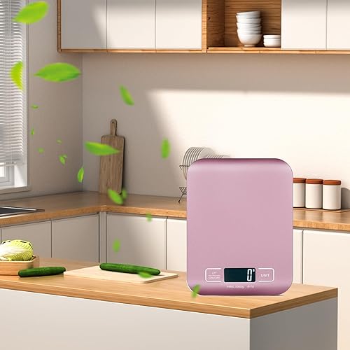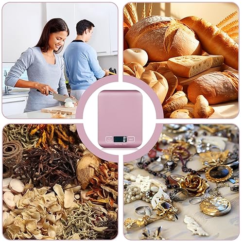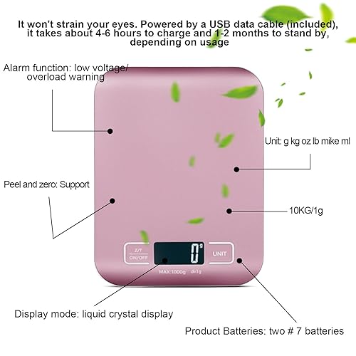 Balance de cuisine numérique rechargeable par USB - 10 kg/1 g - Balance de cuisine avec écran LED et fonction tare - Balance de cuisine numérique pour la pâtisserie et la cuisine, les foires (rose)