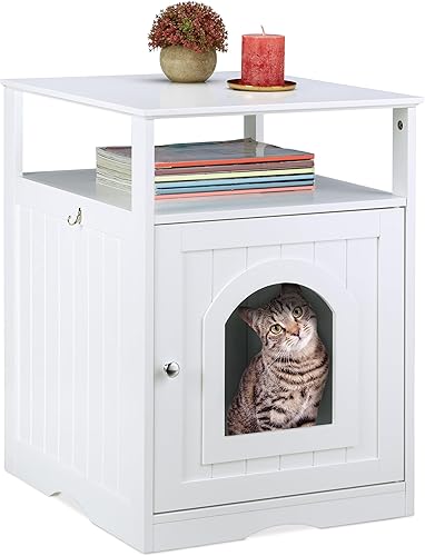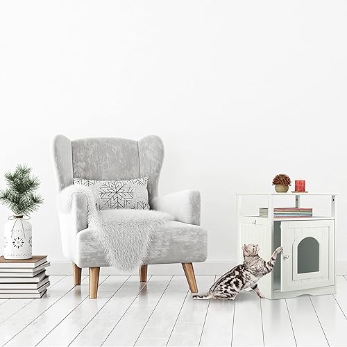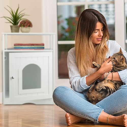 Relaxdays Meuble Chat, Large entrée, avec étagère, Trous d’aération sur Face arrière, HLP 64 x 48 x 53 cm, Grotte, Blanc