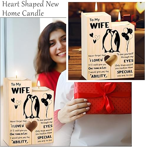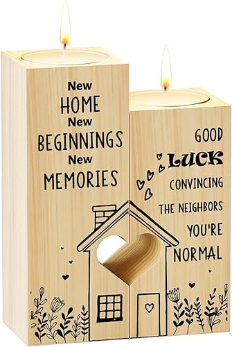 Guyode Bougeoir Bois Cadeau de Déménagement, Bougie Personnalisée Cadeau de Félicitations pour Les Amis la Famille et Les Clients, Chandelier Decoratif Forme de Coeur pour la Nouvelle Maison