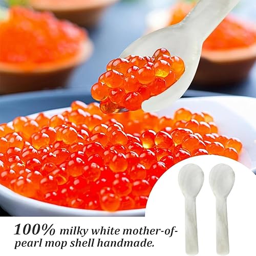 QOPZUJI 2 Pièces Ensemble de Cuillères à œufs Nacre de Rivière Fait Main de Haute qualité Cuillère à Caviar Pour Caviar, Oeufs, Crème Glacée, Café(7cm)