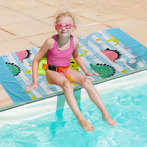 Dinosaure Serviette de Plage, Serviette de Bain Enfant 70 x 140 cm, Dinosaures Séchage Rapide Ultra Absorbant Super Doux Couverture de Plage pour Filles Garçon Enfants