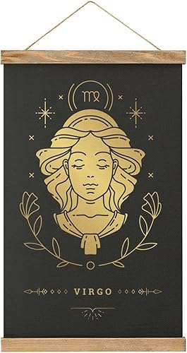 YBEL Poster du signe du zodiaque Vierge en tissu, image d'art en bois, cadre à suspendre, suspension pour décoration de chambre, kit cadeau