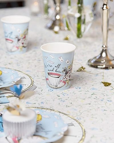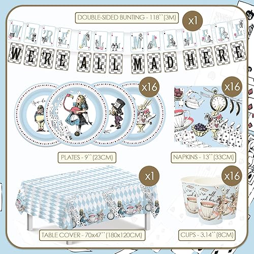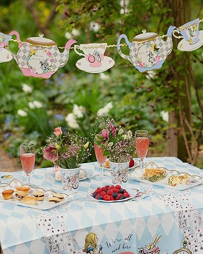 Talking Tables Décorations de fête Alice au pays des merveilles et pour 16, Mad Hatter Tea Anniversaire pour enfants ou adultes, banderole, assiettes, serviettes, tasses, vaisselle douche de bébé