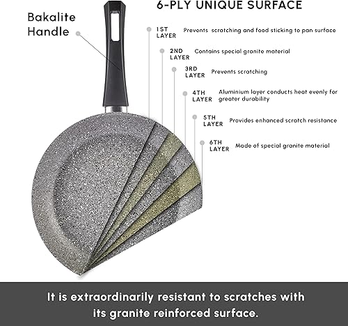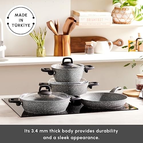 Karaca Gris Bio Granit 7 Casseroles Revêtement Antiadhésif, Ensemble de Casseroles Avec Couvercles en Verre, Batterie de Cuisine, Ensembles de Casseroles, 3 Casseroles Avec Couvercle en Verre