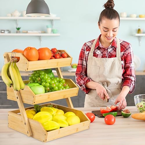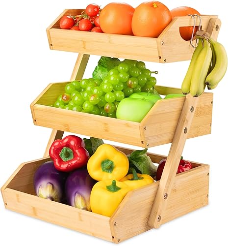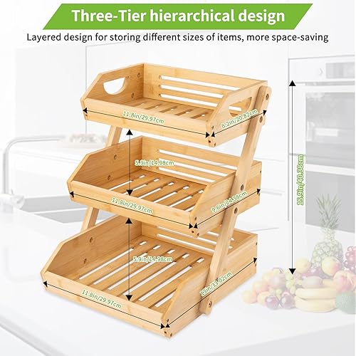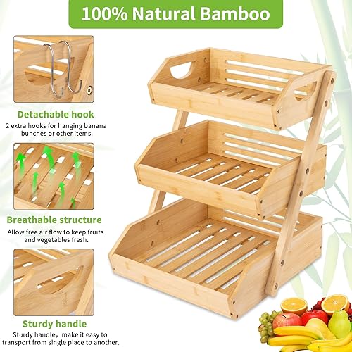 HDCORBETTS Corbeille à fruits en bambou à 3 étages amovible - Panier de service - Corbeille à fruits et support de présentation pour collations - Parfait pour les fruits, les légumes, les collations,