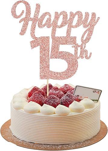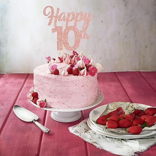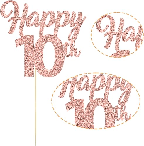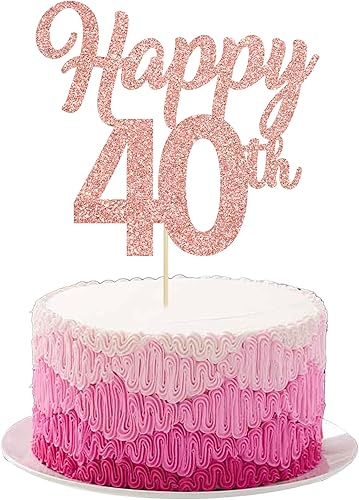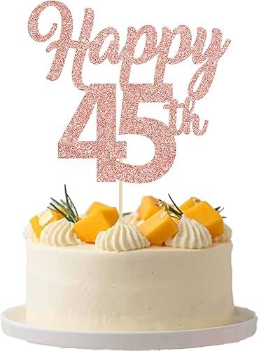 Lot de 3 décorations de gâteau « Happy 45th » à paillettes or rose - Numéro 45 - Pour anniversaire de mariage - Fournitures de fête