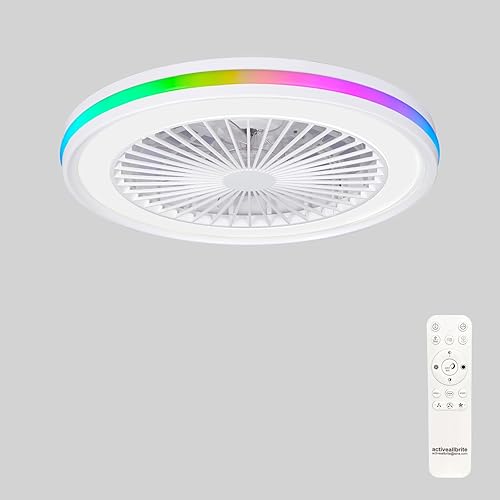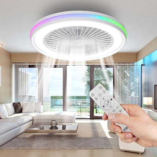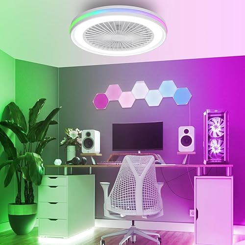 Ventilateur de plafond avec éclairage 47CM, 60W 4200LM Ventilateur de plafond avec télécommande RVB 3000K-6500K Dimmbar, 6 vitesses, Timer, mémoire lumineuse, moteur réversible, für Schlafzimmer