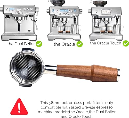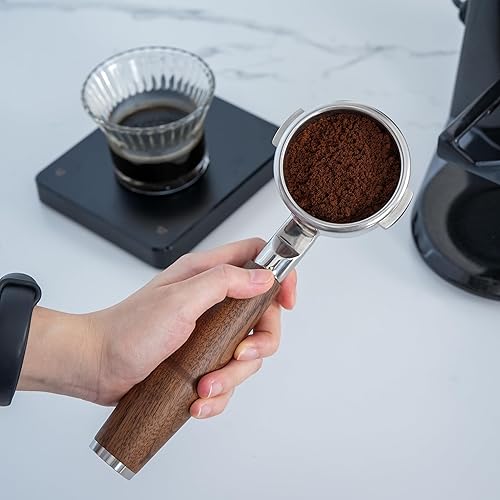 Knodos Bottomless Porte-filtre nu avec panier double shot Noyer Compatible avec sauge/breville 54 mm