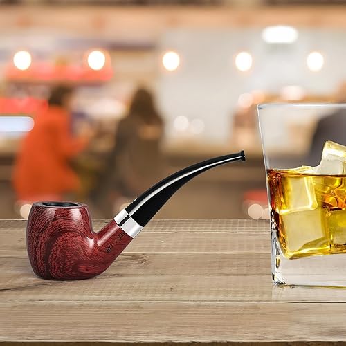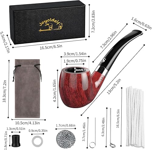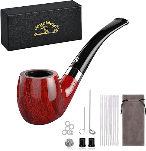 Joyoldelf Ensemble pipe à tabac en bakélite incurvée à fond plat et accessoires de nettoyage pour pipe, coffret cadeau