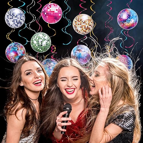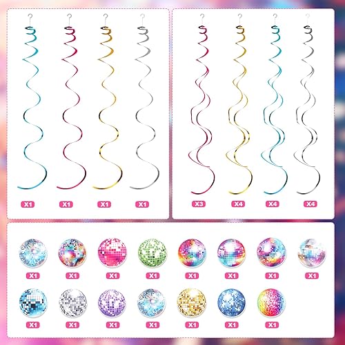 34pcs Décorations de Fête Disco à Suspendre - Colorées et Pré-Assemblées Avec Boules Pour Anniversaire