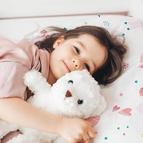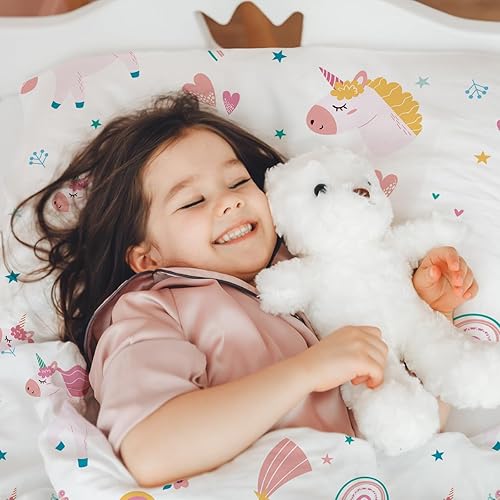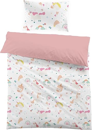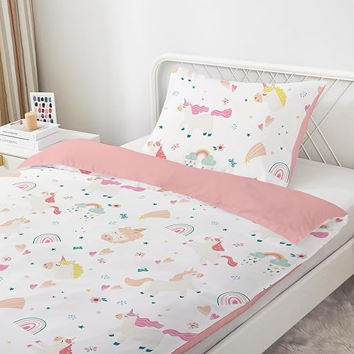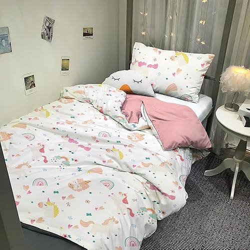 MUSOLEI Housse de Couette 120x150 Licorne Enfant Fille Rose Parure de Lit 90x190 1 Personne Microfibre 3D Imprimé avec Fermeture Éclair avec Taie d'oreiller 40x60 Cadeau Anniversaire Fête Noël