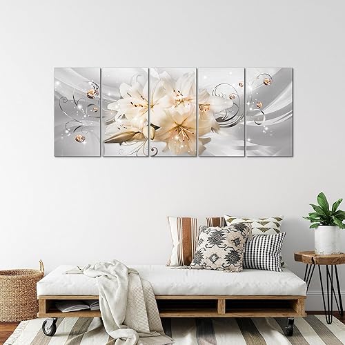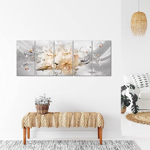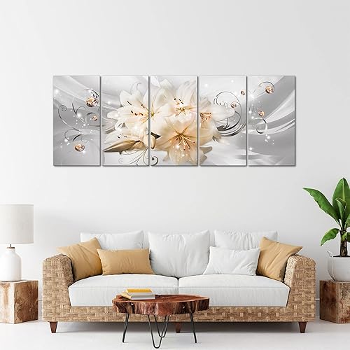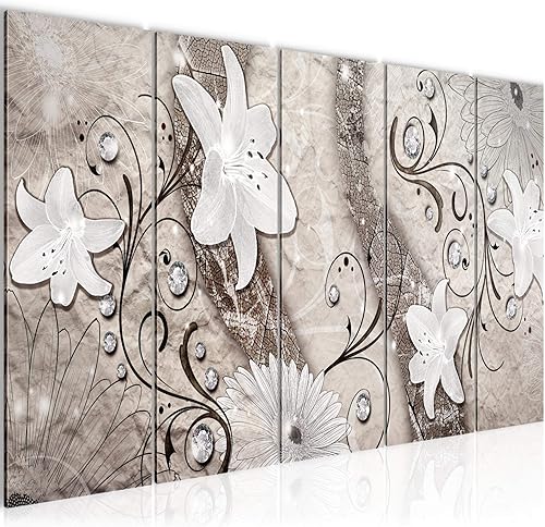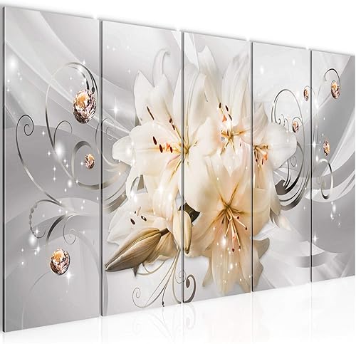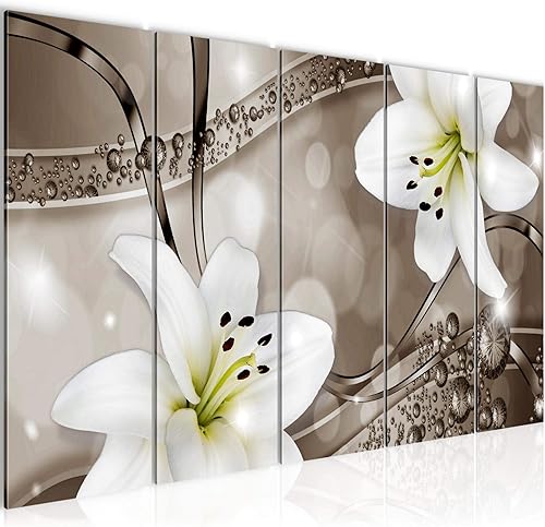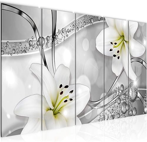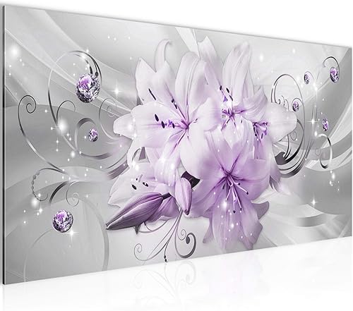 Runa Art Tableau Decoration Murale Lis Fleurs 1 Partie Moderne Toile non tissée Salon Salle Abstrait Violet Gris 019812b