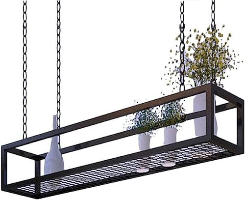 Porte-casseroles Suspendu, Accroche Casserole Porte-Plantes Suspensio Cuisine pour Pot Plante Fleur Support à étagère de Rangement montage au plafond, Cadre de fer en métal noir (Size : 140×25×15cm)