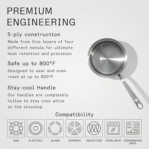 Made In Cookware – 3/4 Quart Chauffe-beurre en acier inoxydable – Fabriqué en Italie - Revêtement en acier inoxydable 5 épaisseurs – Cuisine professionnelle – Compatible induction