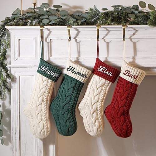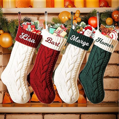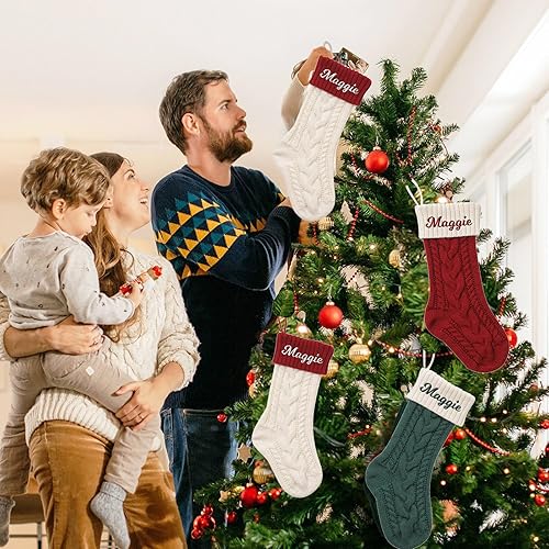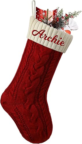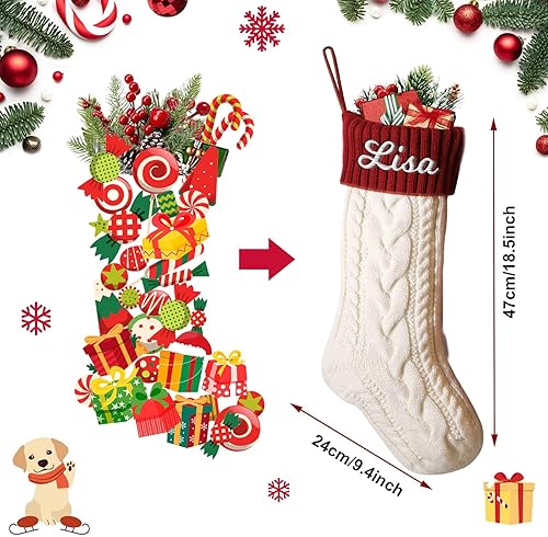Cysincos Chaussette de Noel Personnalisé nom, 46 cm tricotées Chaussettes de Noël familiales Suspendre pour décoration de fête, Rouge (Corps) / Blanc Ivoire (Bouche)