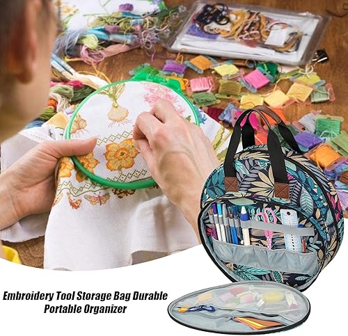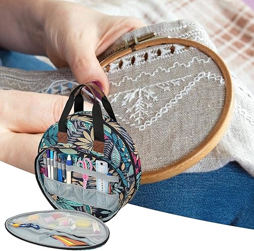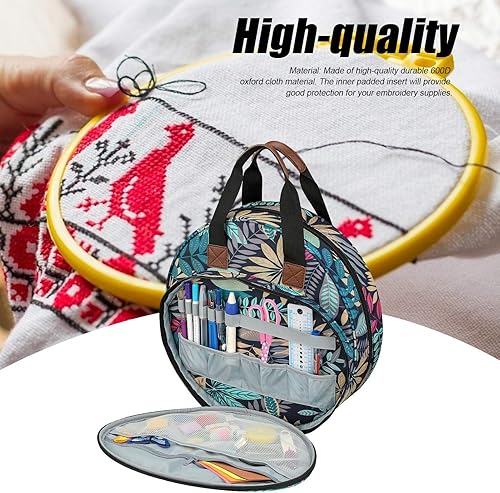 courti Sac à Broder, Sac de Transport Circulaire Portable pour kit d'outils de Point de Croix et Projet de Broderie pour débutants ou Amateurs de Broderie, Organisateur Portable, 40 x 31 x 4