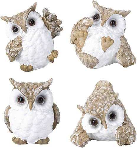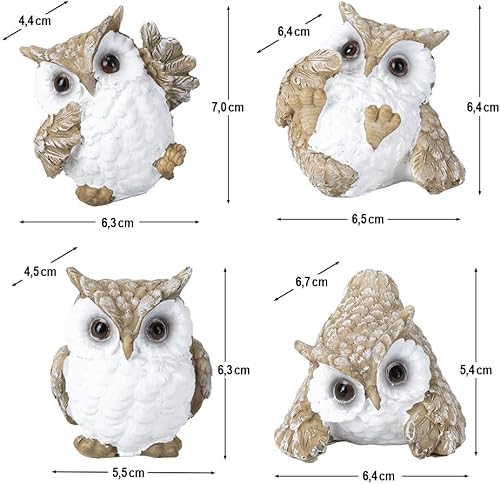Ideen mit Herz Lot de 4 figurines décoratives | Hiboux | Différentes tailles | Décoration pour salon, chambre à coucher ou bureau