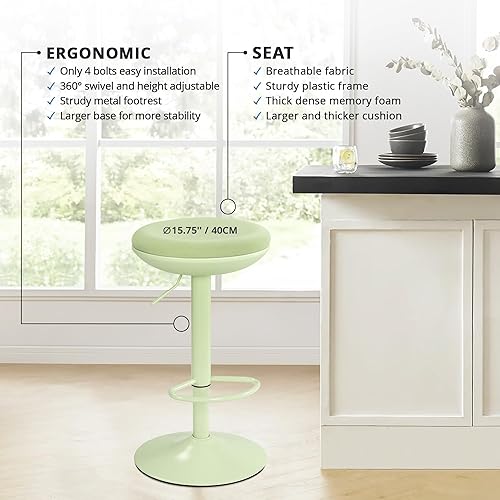 IWMH Chaise de bureau debout ergonomique, hauteur réglable, tabouret de bureau rond pivotant à 360° sans dossier pour chambre à coucher, cuisine, salon (vert)