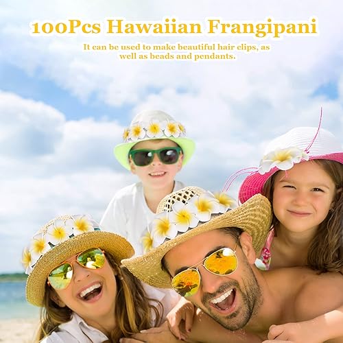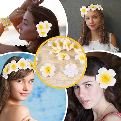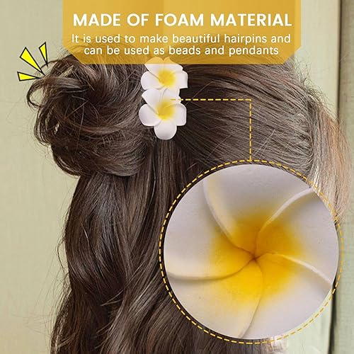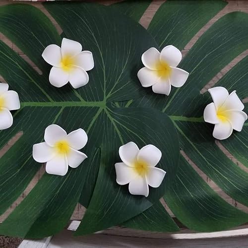 Roundsky 100 pièces en mousse blanche hawaïenne frangipanier artificiel fleurs feuilles fleurs cheveux chapeau couronne bricolage mariage décoration 5 cm
