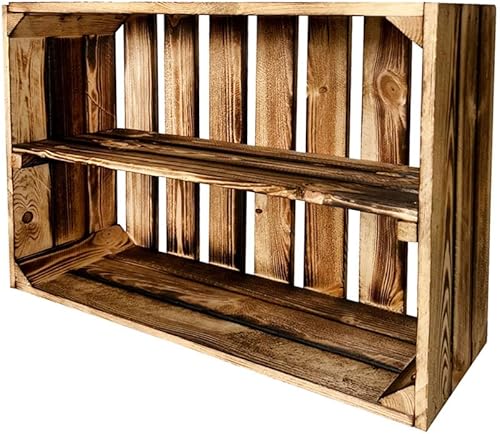Caisses à fruits avec planche centrale - Caisses en bois - Caisses à vin - Caisses à pommes - Commode - Étagère flammée - 60 x 40 x 20 cm